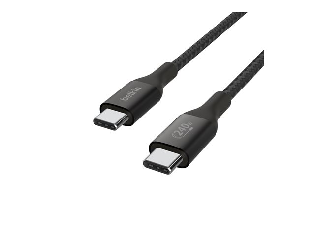 Belkin BoostCharge - USB-kaapeli - 24 pin USB-C (uros) to 24 pin USB-C (uros) - USB 2.0 - 2 m - virransyötön tuki jopa 240 W:n tehoon asti - musta