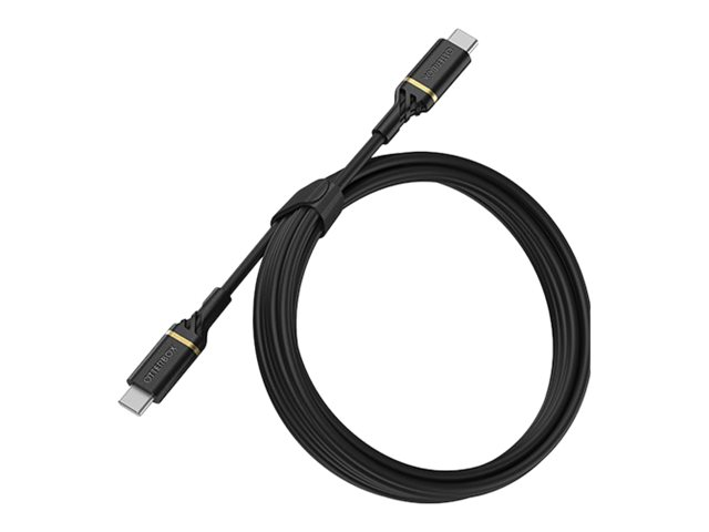 OtterBox Fast Charge Cable Standard - USB-kaapeli - 24 pin USB-C (uros) to 24 pin USB-C (uros) - USB 2.0 - 2 m - musta hohto
