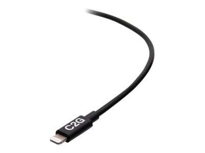 C2G 10ft (3m) USB-C Male to Lightning Male Sync and Charging Cable - Black - Salamakaapeli - 24 pin USB-C uros to Lightning uros - 3.05 m - musta - USB-virransyöttö (20 W), up to 480 Mbps