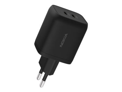 Nokia - Verkkosovitin - 65 watti(a) - 2 lähtöliittimet (24 pin USB-C) - musta - Euroopan unioni 8P00000273
