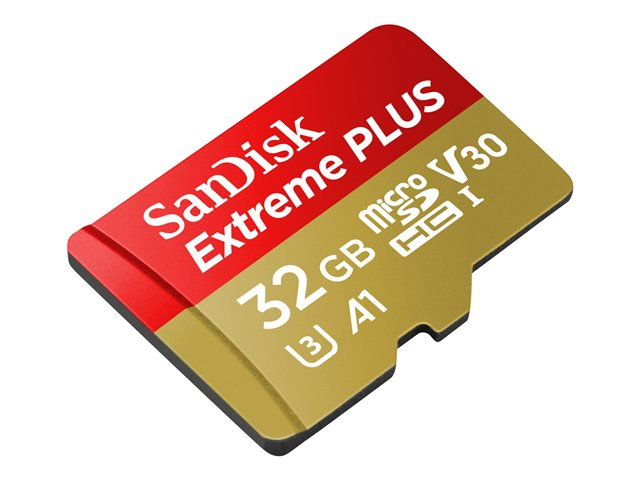 SanDisk Extreme PLUS - Flash-muistikortti (sovitin microSDHC:stä SD:hen sisältyvä) - 32 Gt - A1 / Video Class V30 / UHS-I U3 - microSDHC UHS-I SDSQXBG-032G-GN6MA