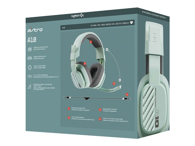 ASTRO Gaming A10 Gen 2 - Kuulokkeet + mikrofoni - täysikokoinen - langallinen - 3,5 mm jakkiliitin - minttu