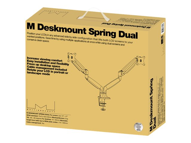 Multibrackets M Deskmount Spring Dual - Asennuspakkaus (pöytäasennus) malleihin 2 LCD-näyttöä - teräs, korkealaatuinen alumiini - hopea -näytön koko: 15"-27"