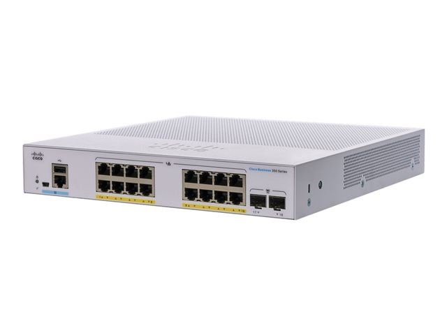 Cisco Business 350 Series CBS350-16FP-2G - Kytkin - L3 - Hallinnoitu - 16 x 10/100/1000 (PoE+) + 2 x Gigabit SFP - telineeseen asennettava - PoE+ (240 W)