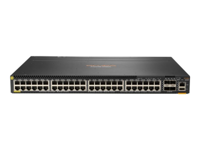 HPE Aruba 6300M - Kytkin - L3 - Hallinnoitu - 48 x 10/100/1000 (PoE+) + 4 x 1 gigabitin / 10 gigabitin / 25 gigabitin / 50 gigabitin SFP56 (maa-satelliittiyhteys / pinottava) - edestä ja sivulta taakse - telineeseen asennettava - PoE+ (1440 W)
